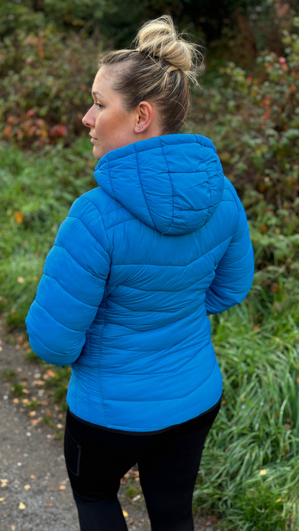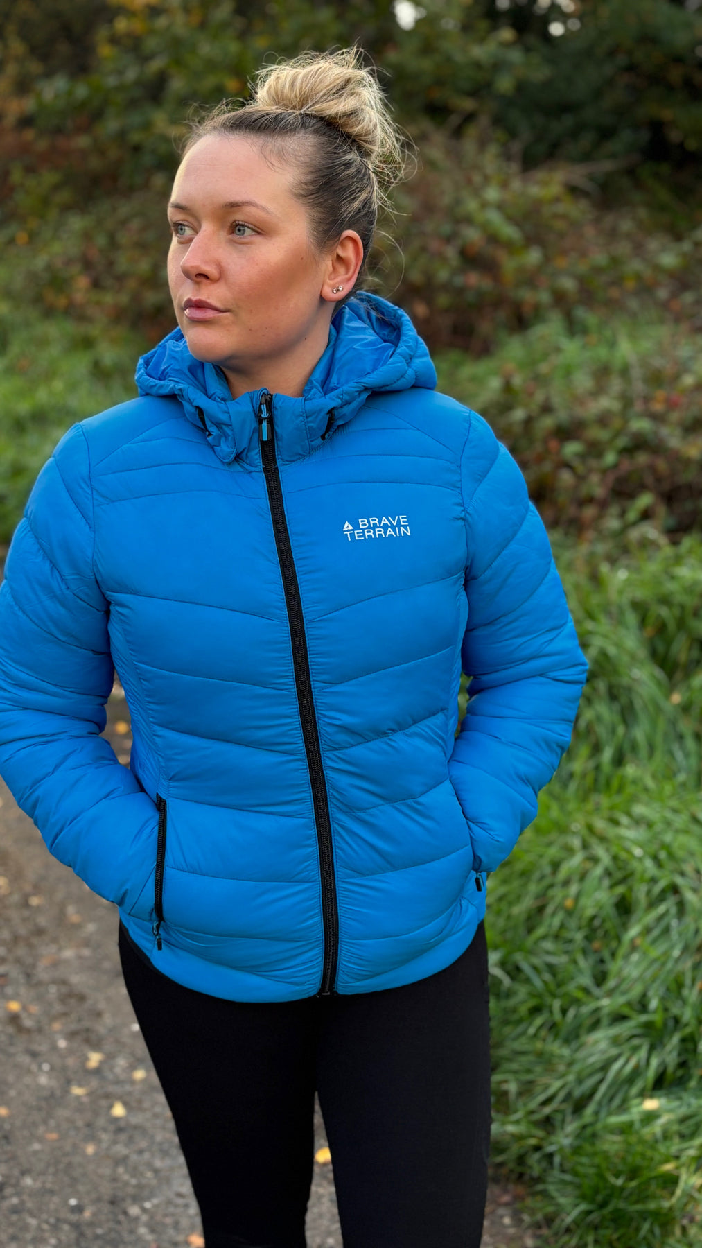 Cut in a regular, feminine fit and quilted with sleek diagonal lines, it delivers flattering shape and subtle texture. The detachable hood and elasticated edge bindings provide flexible protection against the elements, while lightweight insulation ensures all-day warmth without bulk.