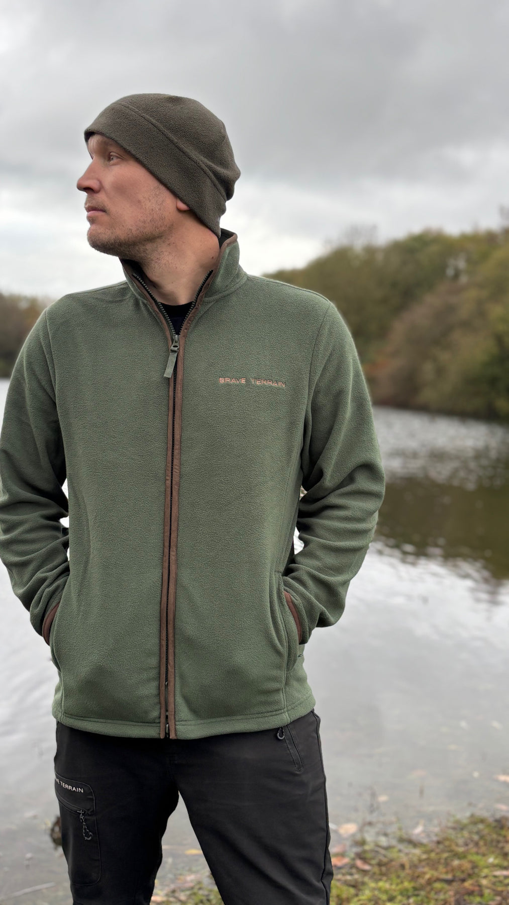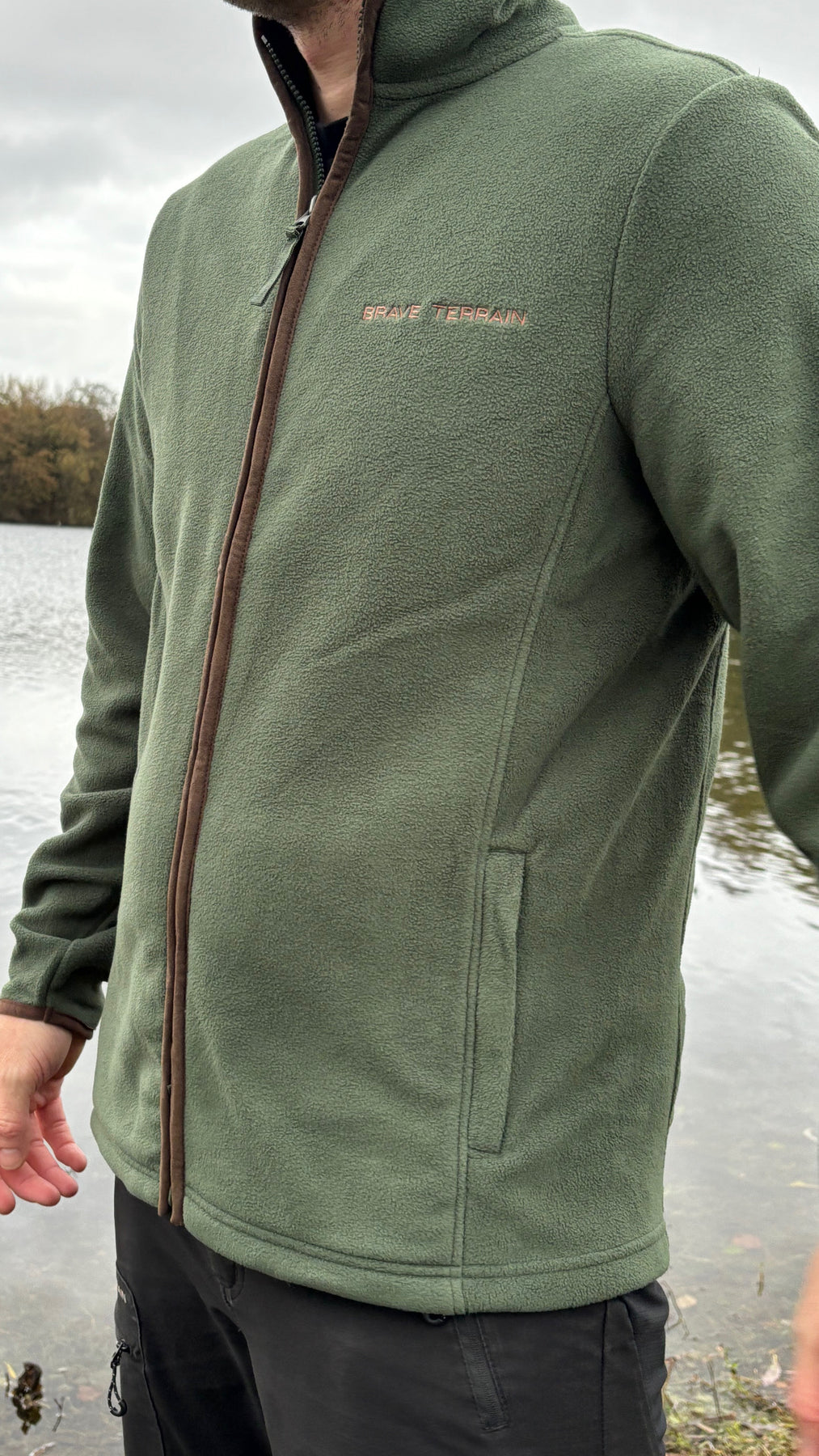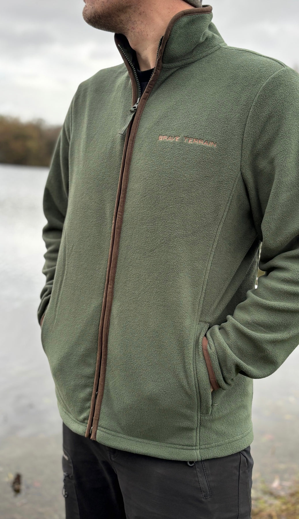 A clean, modern design is elevated by contrast-coloured trim along the collar, zip, and cuffs, giving the fleece a distinctive look. The front proudly showcases the Brave Terrain embroidered Branding, adding a refined, durable touch of branding.