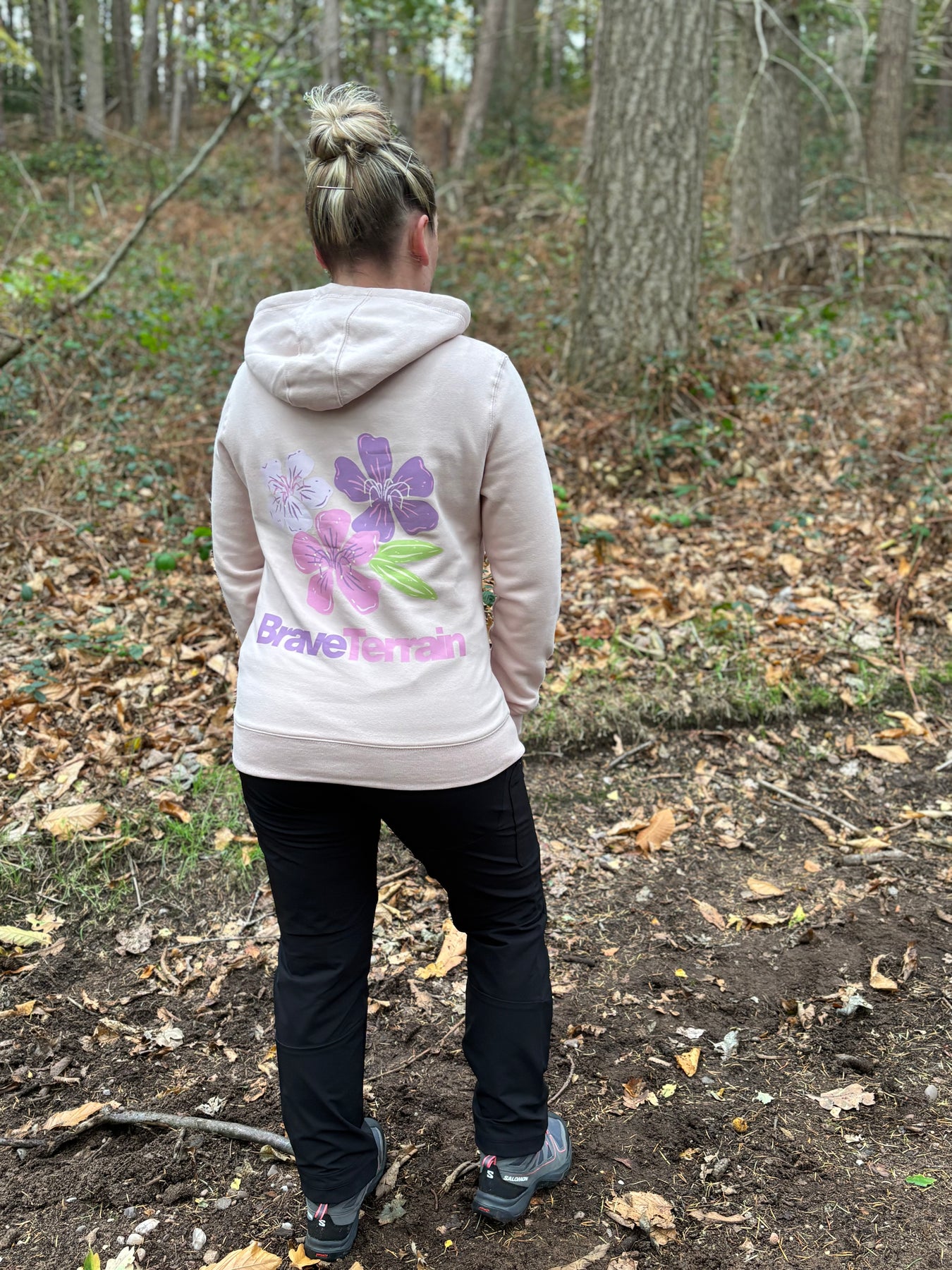 Elevate your everyday wardrobe with the All Seasons Women’s Hoodie—where elegance meets comfort. Crafted from an ultra-soft blend of 80% pre-shrunk ring-spun cotton and 20% recycled polyester, this hoodie offers a luxuriously peached feel that’s gentle on the skin while being kind to the planet. Adding a statement finish, the large floral print design on the back brings a bold yet elegant touch—celebrating femininity and nature-inspired style in every season.